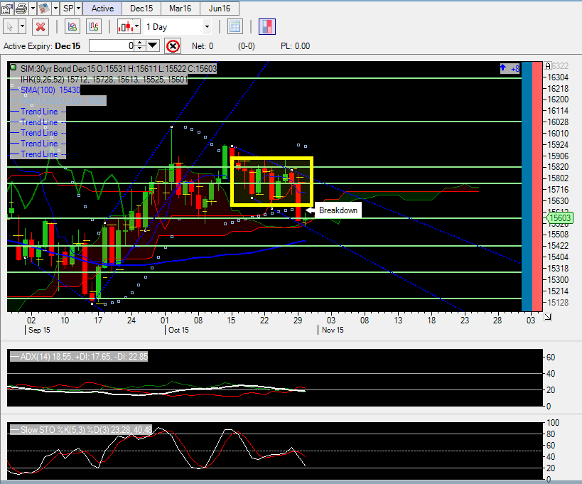 It broke well below the previous weeks resistance levels. A two point (64+ tick) breakdown day.